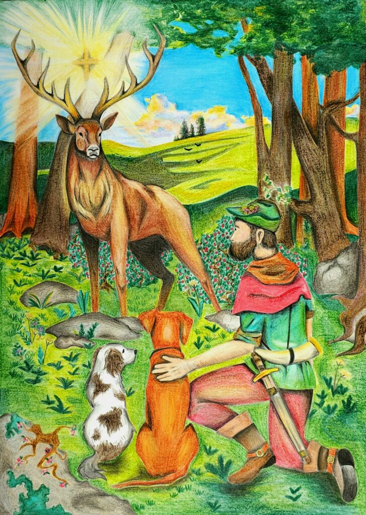 obrázek sv. Huberta umístěn na „ženatém dubu“ v obci Skaličany